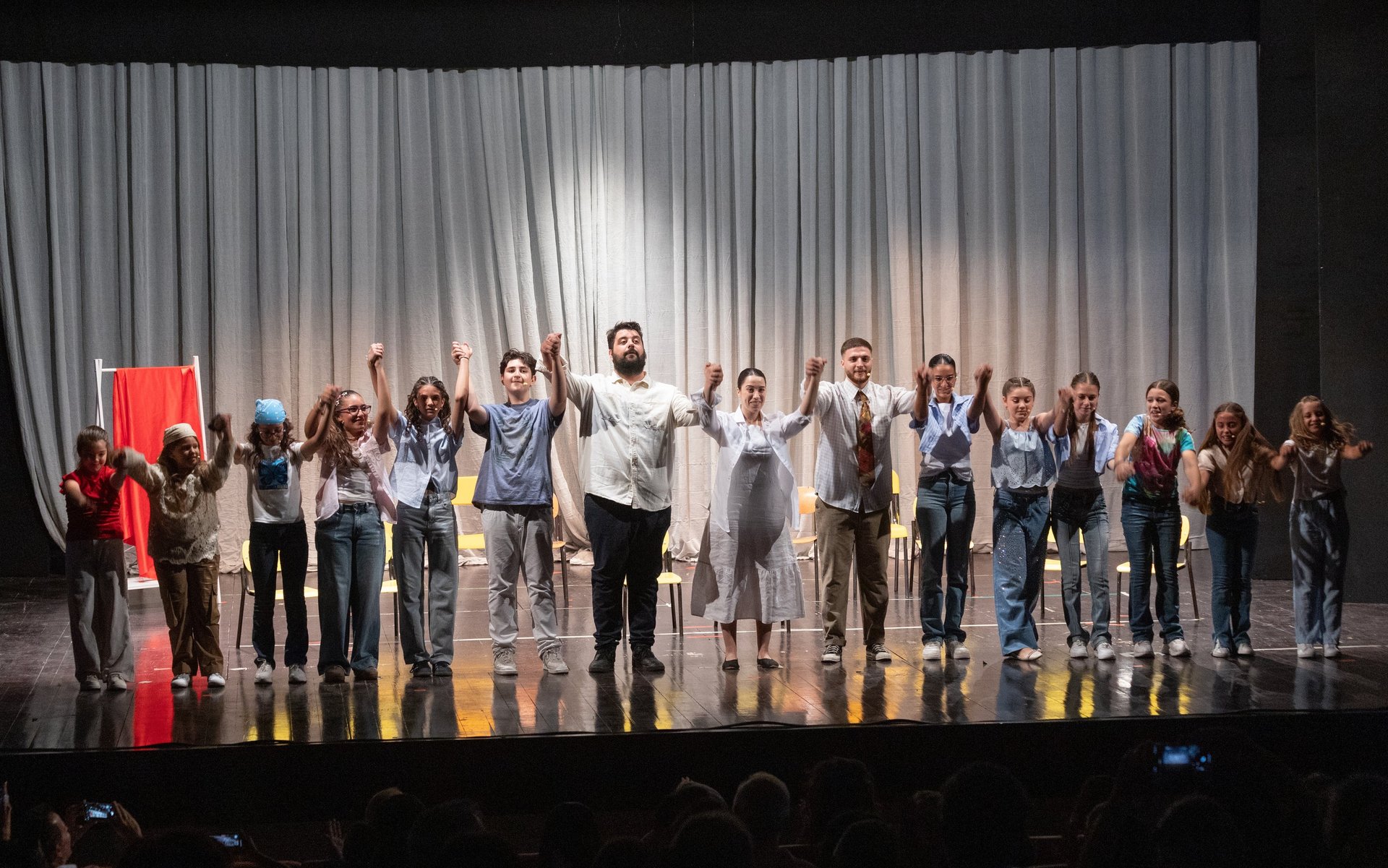 Spettacolo finale su un palco teatrale, con performance collettiva.